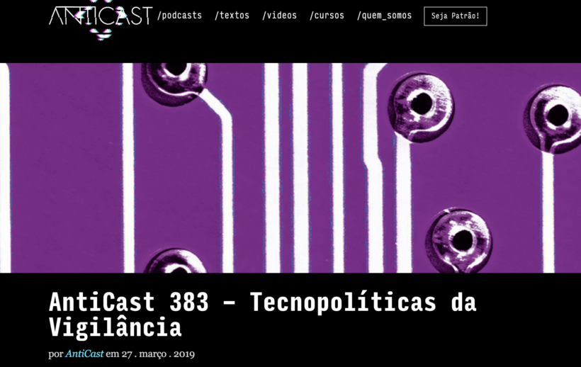 O livro Tecnopolíticas da Vigilância: perpectivas da margem foi tema de debate no último Anticast, no dia 27 de março. Neste programa, Ivan Mizanzuk entrevista Fernanda Bruno (Medialab / UFRJ) e Rodrigo Firmino (PPGTU / PUCPR) sobre os temas presentes no livro assim como outros desdobramentos dessas discussões nas atividades da Lavits. Ao longo da conversa, Fernanda e Rodrigo contam sobre a […]