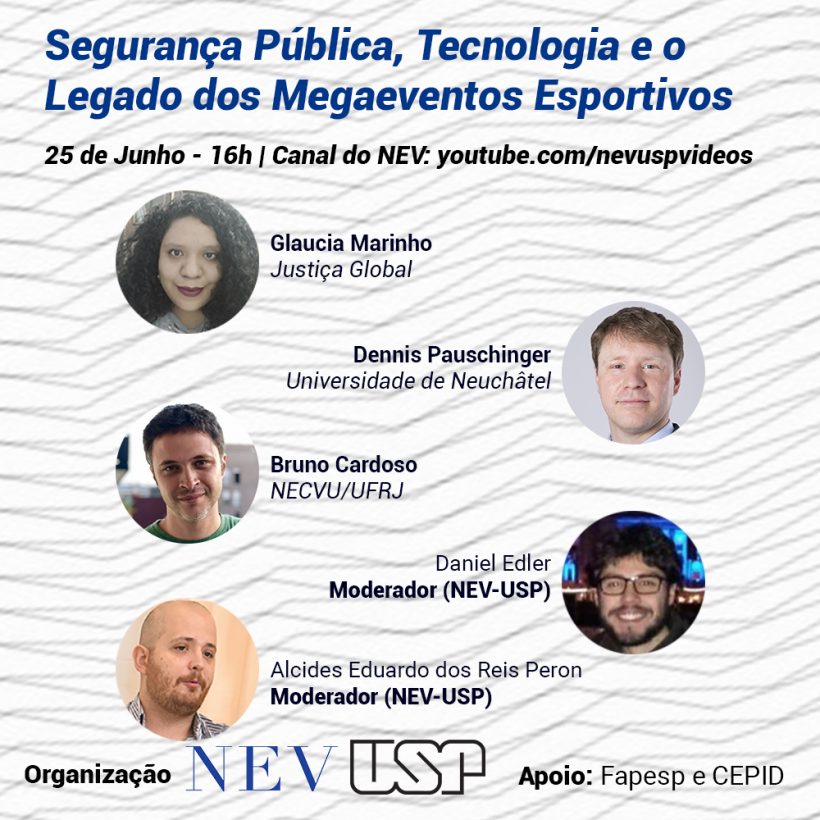 No dia 25, Bruno Cardoso (LED/UFRJ, Lavits, NECVU/UFRJ) participou do debate “Segurança pública, tecnologia e legado dos megaeventos esportivos”. Com organização do do Núcleo de Estudos da Violência da USP (NEV/USP) e apoio da Fapesp e CEPID, a mesa contou com Glaucia Marinho, da Justiça Global, Dennis Pauschinger, da Universidade de Neuchâtel, e teve a […]