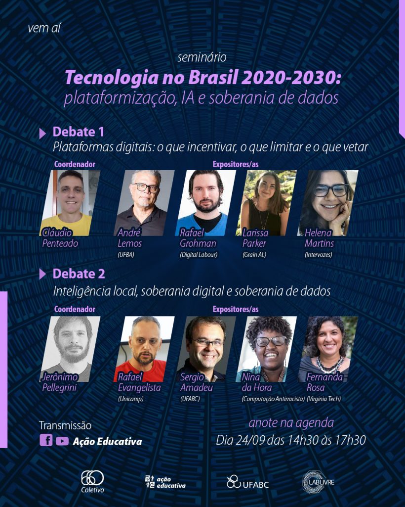 Na sexta (24), Rafael Evangelista participa do seminário “Tecnologia no Brasil 2020-2030: plataformização, IA e soberania de dados”. O evento é transmitido pelas redes da Ação Educativa: https://youtube.com/acaoeducativa. A programação do encontro terá duas mesas. Às 14h30, ” Plataformas digitais: o que incentivar, o que limitar e o que vetar: , com André Lemos (UFBA), […]