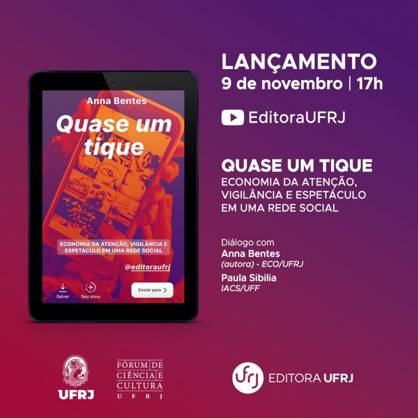 No dia 09.11 foi lançado pela Editora UFRJ o livro “Quase um tique: economia da atenção, vigilância e espetáculo em uma rede social”, de Anna Bentes. No evento de lançamento, Bentes conversa com Paula Sibilia (UFF) sobre as questões do livro e outros desdobramentos. A transmissão do evento aconteceu pelo canal da Editora no YouTube: […]