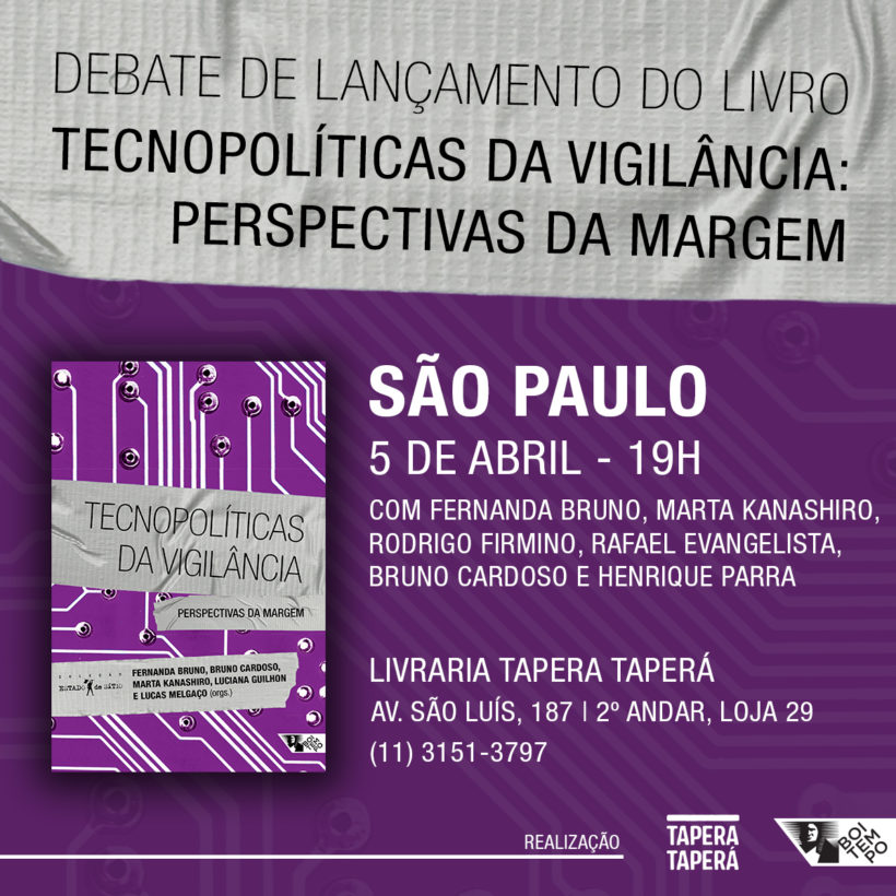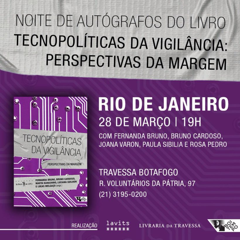 A LAVITS, a Boitempo, a Livraria da Travessa e autores convidam para o lançamento do livro TECNOPOLÍTICAS DA VIGILÂNCIA: PERSPECTIVAS DA MARGEM, quinta-feira, dia 28 de março, no Rio de Janeiro. O evento contará com a presença dos autores e organizadores Fernanda Bruno, Bruno Cardoso , Joana Varon, Paula Sibilia, Rosa Pedro e outros! Noite de […]