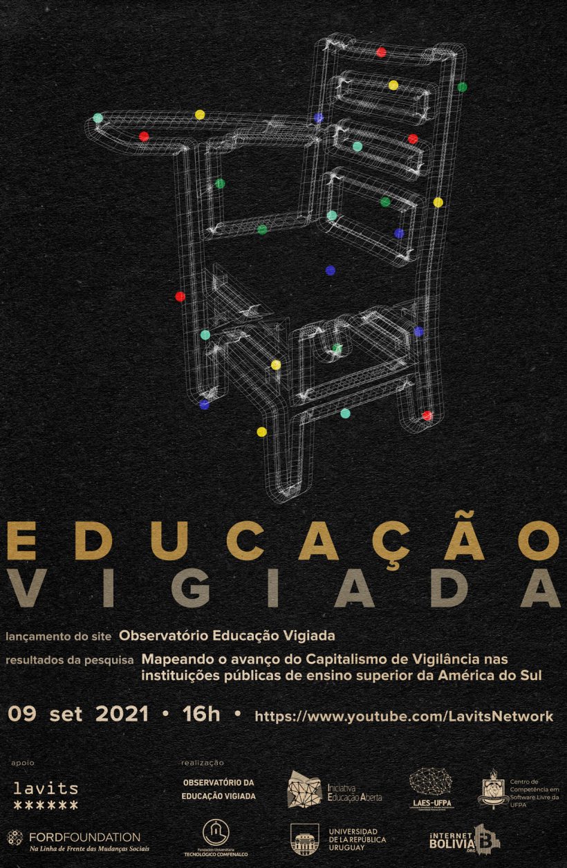 No dia 09 de setembro, às 16h, o Observatório Educação Vigiada e a Rede LAVITS apresentam o resultado da pesquisa “Mapeando o avanço do Capitalismo de Vigilância nas instituições públicas de ensino superior da América do Sul”. Com cooperação de pesquisadores do Brasil, Bolívia, Colômbia e Uruguai, a pesquisa apresenta um mapeamento de 447 instituições públicas de ensino superior da América do Sul, identificando a presença massiva de grandes empresas de dados no gerenciamento de domínios de e-mail dessas instituições. A pesquisa é resultado de uma parceria com a Rede LAVITS, no âmbito do projeto “Assimetrias e (In)visibilidades da vigilância: conhecimento situado, pesquisa e ação social na América Latina”, com apoio da Fundação Ford.