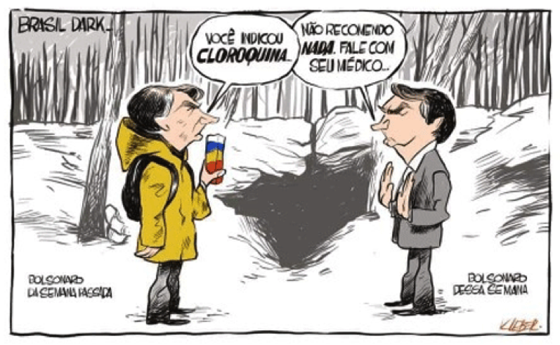 Quando tornou-se impossível continuar negando a realidade da crise, o discurso bolsonarista passou a difundir uma visão, inicialmente popularizada por Donald Trump, de que a covid-19 podia ser facilmente prevenida ou curada, notadamente a partir daquele que se tornou o medicamento mais emblemático da pandemia: a hidroxicloroquina, ou simplesmente cloroquina. Alçada como verdadeira solução para a crise sanitária global – conjugando as características de ser barata, conhecida e inofensiva – a cloroquina se tornou um símbolo do próprio bolsonarismo e do seu modo de lidar com a pandemia.
