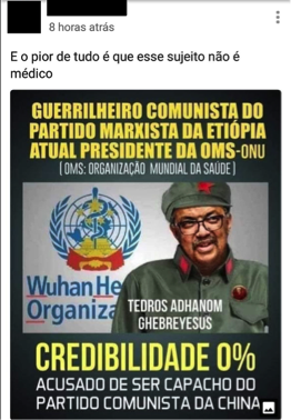 Por outro lado, os médicos que rejeitam a cloroquina são associados à omissão de socorro. São repetidas as afirmações de que existiriam razões “puramente” ideológicas e/ou econômicas para rejeitar a prescrição e uso massivo no tratamento e na profilaxia da droga contra a covid-19, resultando inclusive em mortes desnecessárias. São aventados interesses econômicos das indústrias farmacêuticas e do “comunismo” personificado no governo do partido comunista chinês – mas também a esquerda nacional – que teriam como interesse derrubar o governo federal. De maneira recorrente, são mencionados “planos esquerdistas” para “quebrar” a nossa economia e endividar o país. O ponto central é que os médicos que não prescrevem a cloroquina estariam supostamente aliados à “entidade política” – portanto não-científica – encarnada pela Organização Mundial de Saúde, sem contar os planos da “grande mídia” em promover a desinformação contra a cloroquina. Nessa gramática, amplamente compartilhada com o pensamento conspiratório e os populismos contemporâneos, o campo científico é dividido entre agentes autênticos – cientistas de fato, portadores da verdade – e inautênticos, que representariam interesses econômicos, políticos e “globalistas” que escondem suas reais intenções.