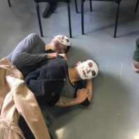 Por fim, divididos em grupos, participantes utilizaram elementos cênicos e os próprios corpos para criarem uma cena de demonstração da situação de opressão, propondo assim um contra-projeto libertário.
